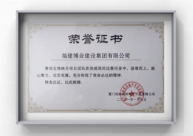 五缘映月项目达售荣誉证书