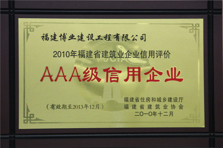 2010年福建省建筑业信用评价AAA级信用企业
